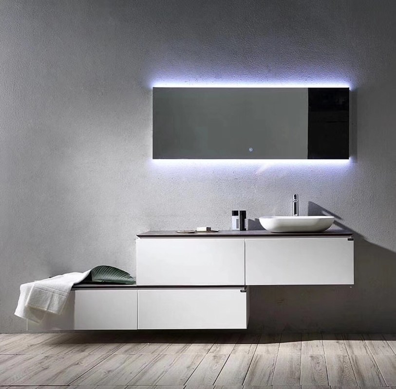 El estilo y la elegancia modernos vienen junta para esto bien-hecha a mano diseñaron la vanidad moderna del cuarto de baño de la madera contrachapada del estilo con el espejo encendido del maquillaje. Añadirá un toque de elegancia a su cuarto de baño y seguramente re-la activará a su diseño y modernizará el aspecto de su cuarto de baño.